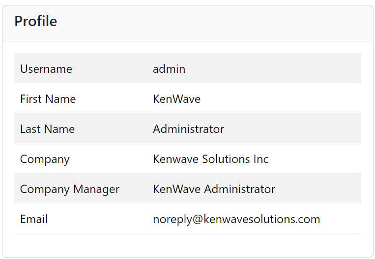 The figure below shows the Profile card on the Dashboard page: