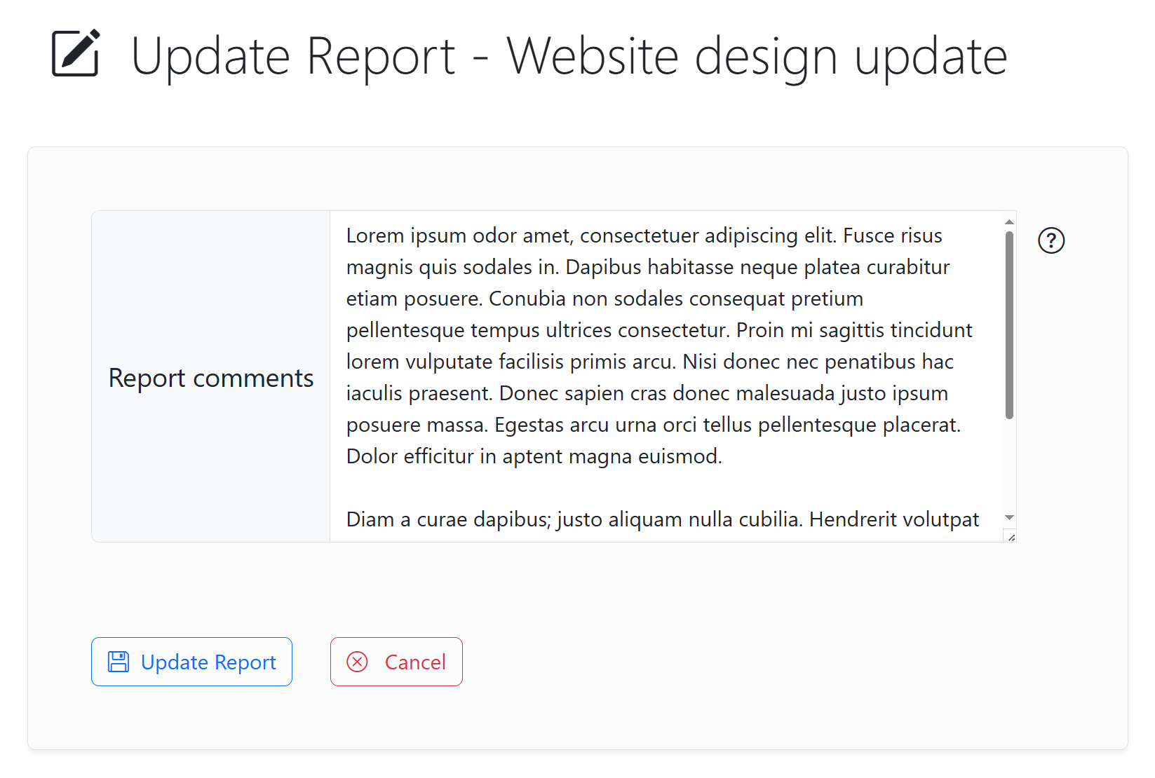 Click on the Update Report button to save the changes or the Cancel button to discard them.