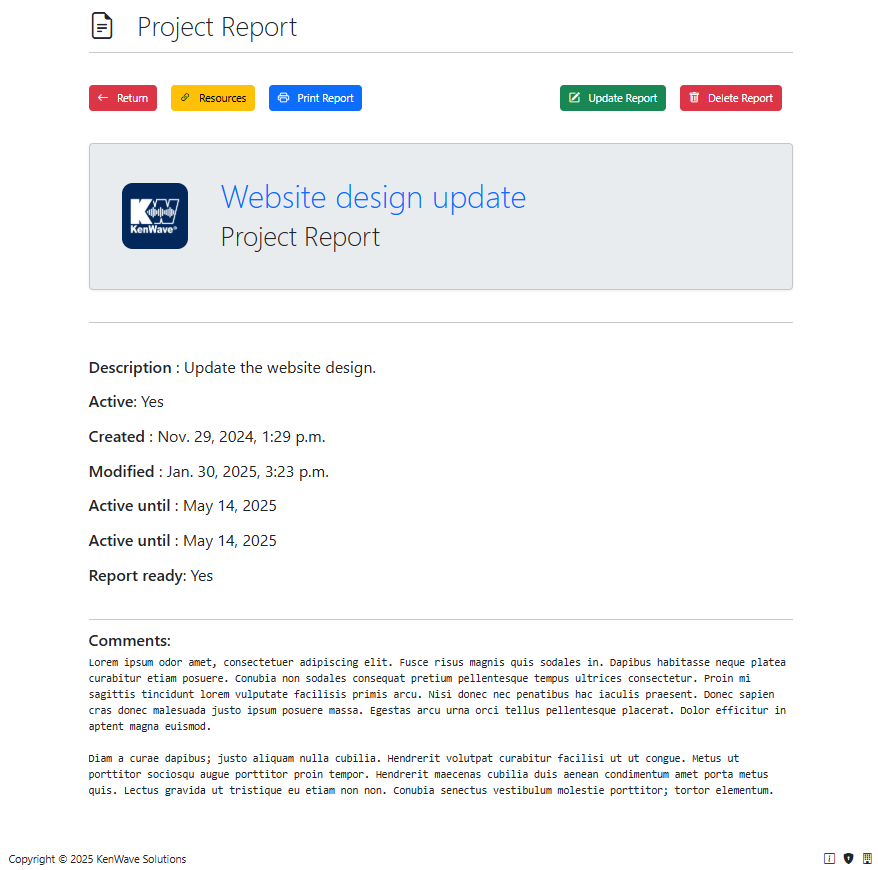 The figure below shows an example of a project report page: