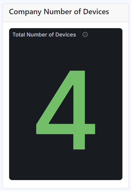 The Company Number of Devices card shows the number of devices registered to the company, independently whether the status of the devices are checked in or out.