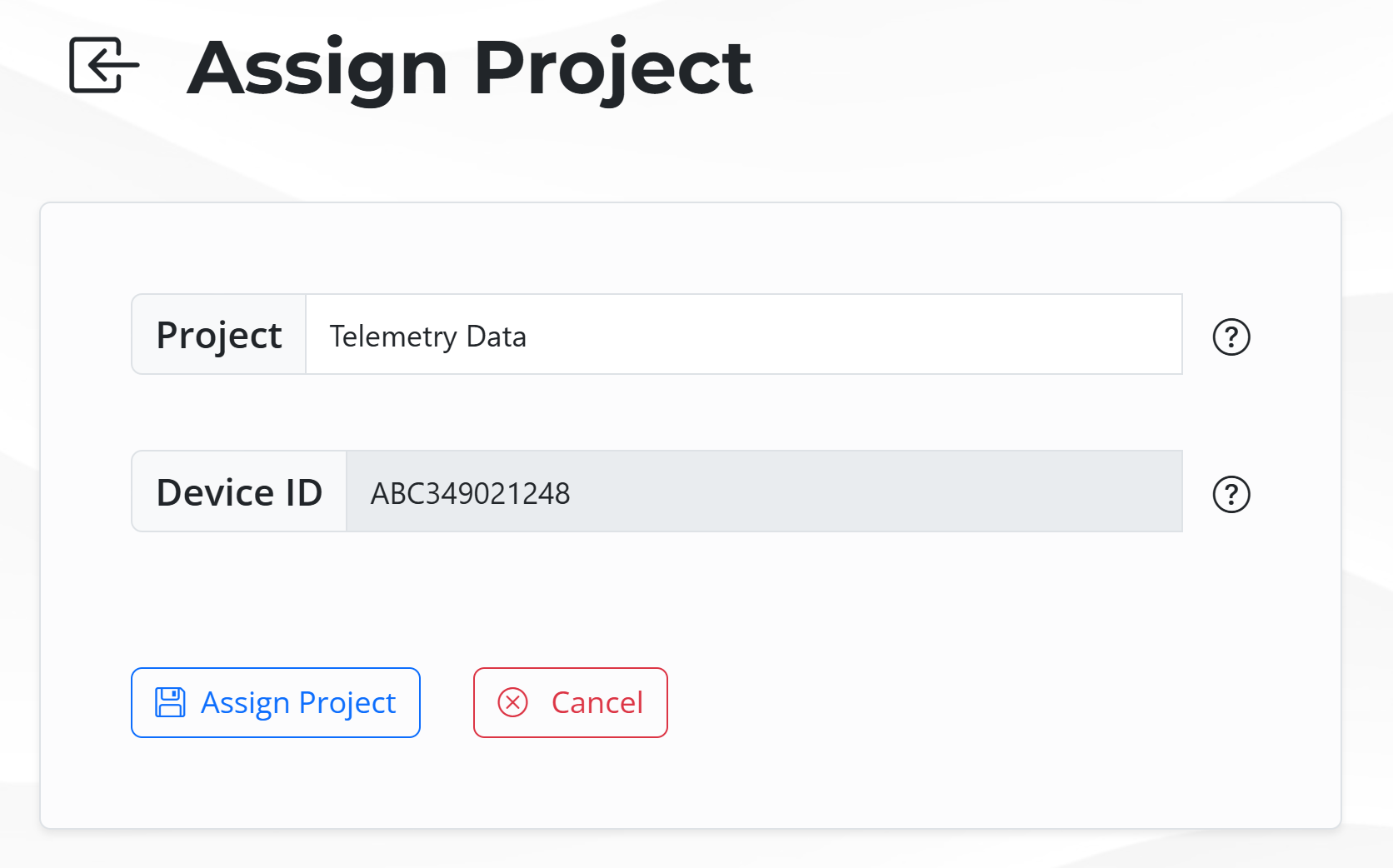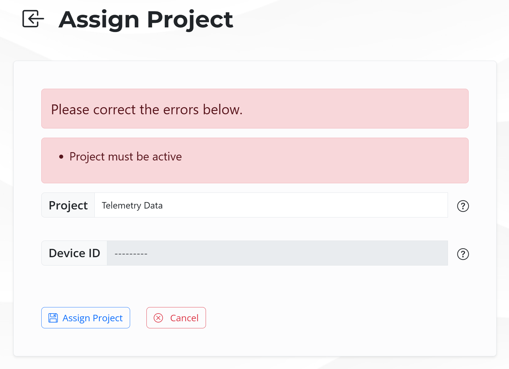 Click on the button Assign Project to assign the project to the device; click on the button Cancel to dismiss it.