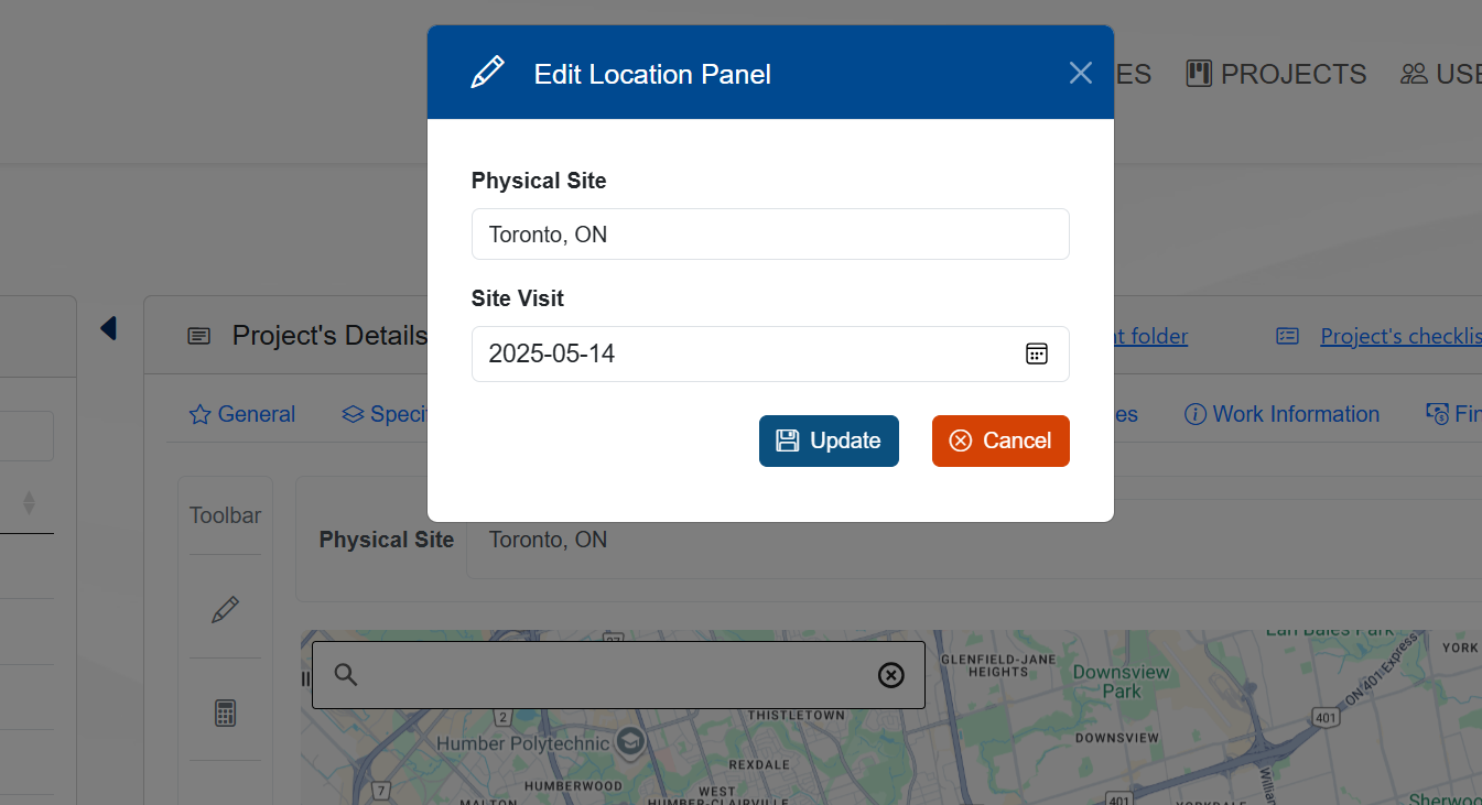 - Click on the Edit icon on the Toolbar; the Update Location form will appear on a modal window.