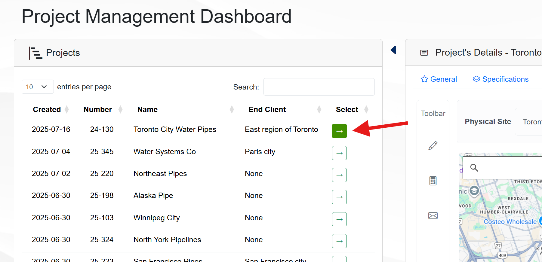 - On the Select column of the Projects panel, click on the Select project's icon to select it.
