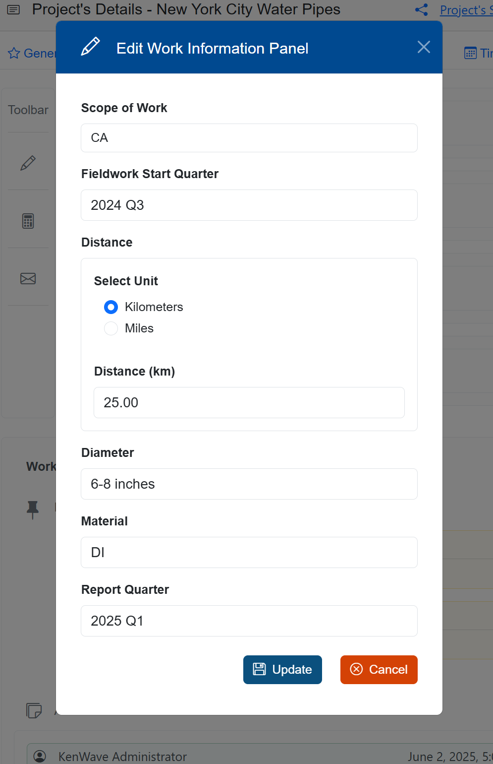 The information displayed helps managers and technicians to understand the project’s focus, timeline, and scale, facilitating better decision-making and resource allocation, in conjunction with the Timetables tab.
